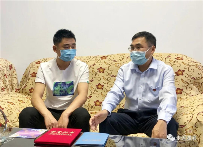 在刘升升家中,亢哲楠与他亲切交谈,详细了解刘升升在武汉雷神山医院的志愿者经历、生活状况,关心他的身体健康情况,并向他致以敬意、表示感谢。亢哲楠赞许刘升升不畏艰险迎难而上的精神,称他是敢于同疫情作斗争的英雄,是湖滨区的骄傲。