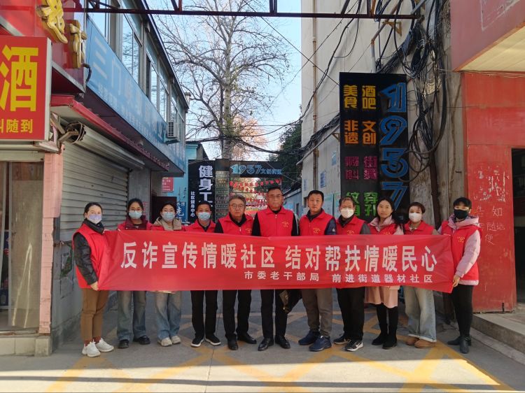 为扎实开展双报到,强化党员先锋模范作用,推动党建、联建、共建,12月7日下午,前进街道器材社区携手共建单位三门峡市市委老干部局共同开展反诈宣传情暖社区,结对帮扶情暖民心志愿服务活动。