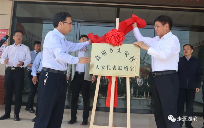 仪式上,李发军、周建文共同为高庙乡大安村人大代表联络室揭牌。周建文宣布湖滨区5月份人大代表活动日启动。