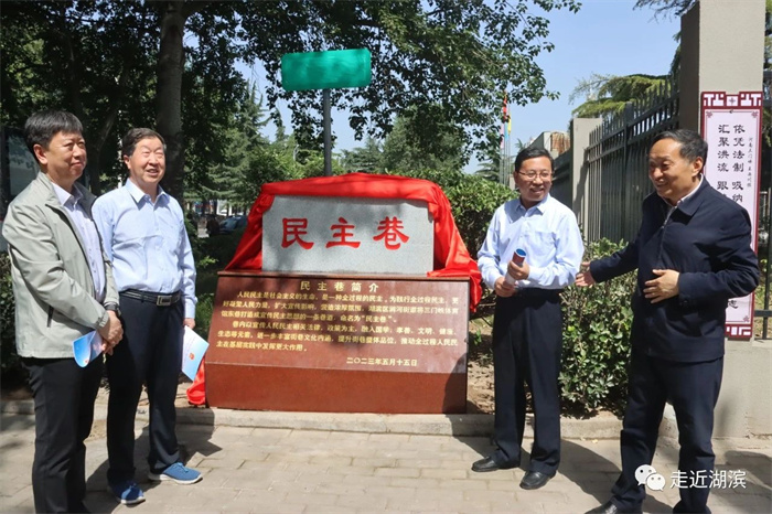 当天,涧河街道建设全过程人民民主实践展暨民主巷揭碑仪式在崤北社区举行。李发军、吕良涛、李万泉与中国楹联学会副会长、三门峡市楹联学会会长方留聚共同为民主巷揭碑。