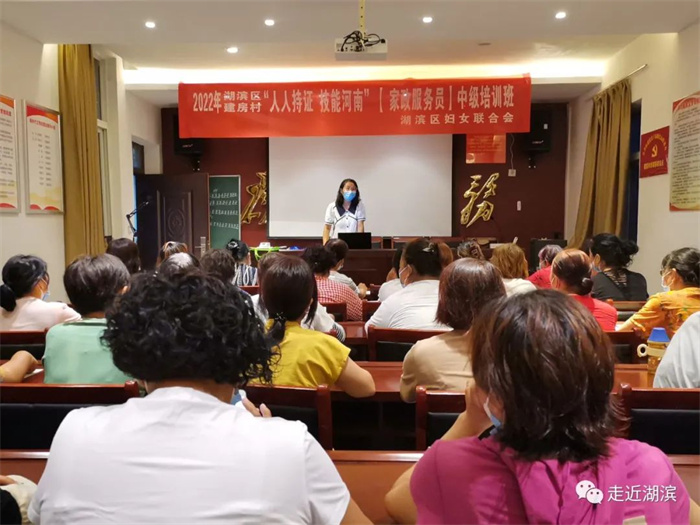 近日,湖滨区妇联举办的2022年人人持证 技能河南家政服务员培训班在会兴街道建房村开班了,培训班共招收家政服务员学员36人,培训时间共13天,包括85个课时(线上和线下)的理论知识和实操课程,考试合格后,颁发相应专业的职业技能等级证书。为了确保培训效果,区妇联在技能培训的方式上注重专业性和实用性,与砥柱学校紧密结合,聘请教学经验丰富、动手能力强的老师,采取理论学习与实际操作相结合的办法现场教学,并通过职业推介、学员回访等多种方式,保障培训质量,做好就业跟踪服务,为广大妇女实现就业保驾护航。