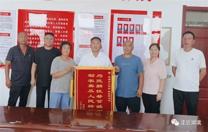 近日,高庙乡大安村二组瓜农赵建年夫妇为大安村送来一面烫金锦旗,锦旗上助农卖瓜人民好领导,为民解忧替百姓解难两行大字熠熠生辉。