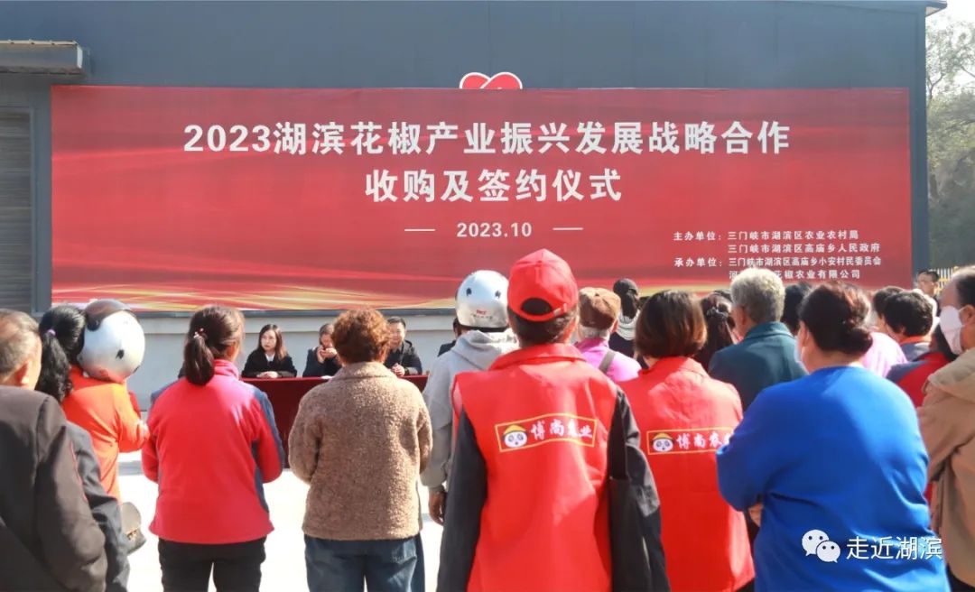 为拓宽椒农销售渠道,增加农户收入,推动特色农业产业发展,助力乡村振兴,由湖滨区农业农村局、高庙乡人民政府主办的2023湖滨花椒产业振兴发展战略合作收购及签约仪式在高庙乡小安村举行。