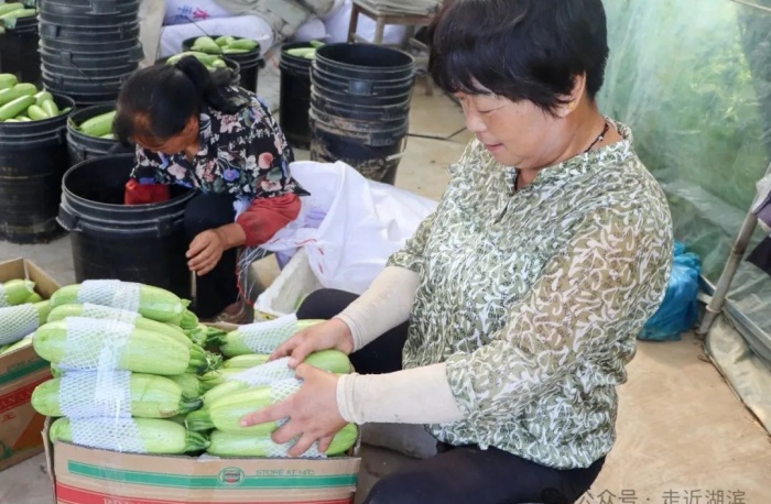 6月12日,走进磁钟乡赵家后村蔬菜大棚种植基地,棚内绿意盎然,大片大片的绿叶中点缀着朵朵黄花,绿叶掩映下的西葫芦翠绿鲜嫩、体态均匀。工人们正忙着将刚采摘下来的西葫芦进行包装、整箱,现场一派丰收景象。近年来,湖滨区坚持农业高质量发展“六化”方向,持续推进优质蔬菜产业基地、中药材种植、林果种植、畜牧养殖等基地建设,重点打造交口、磁钟2个千亩蔬菜基地。建设日光温室大棚300余座,全区蔬菜播种面积15900亩,产量达49500吨。发展连翘、苦参、板蓝根等中药材种植3100亩。全区水果总面积10539亩,总产量3522.44万公斤。