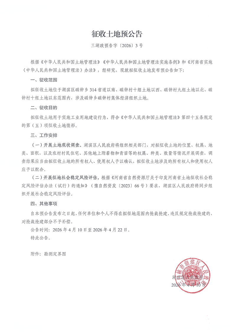 征收土地预公告(三湖政预告字〔2026〕3号)