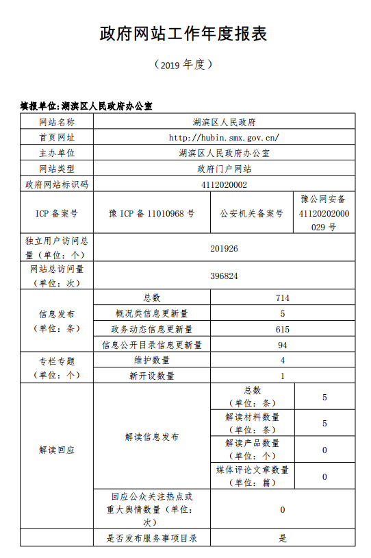 湖滨区人民政府门户网站2019年度工作报表