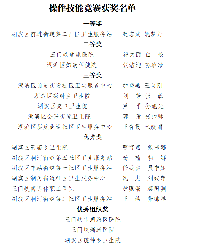 经过紧张激烈的比拼,决赛成功举办。历经1个月的部署安排和强化训练,湖滨区庆祝2023年中国医师节系列活动医师技能竞赛圆满落下帷幕。最终,操作技能竞赛中28名医师获得个人荣誉,3家医疗机构获得优秀组织奖;理论技能竞赛中5名医师获得个人荣誉。