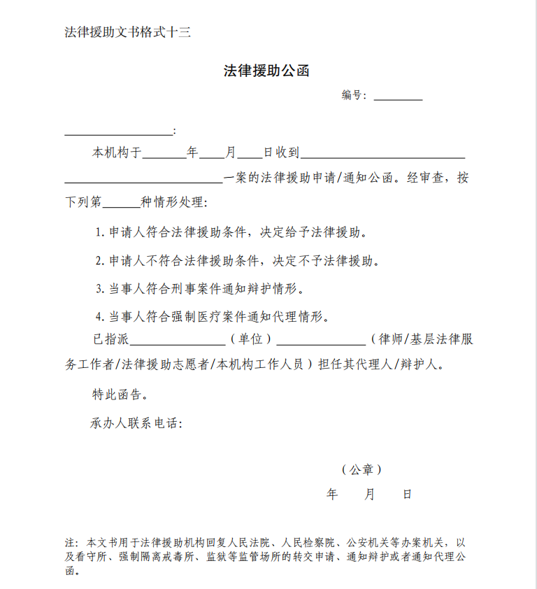 根据《法律援助条例》《河南省法律援助条例》,现将湖滨区司法局法律援助中心:一、给予法律援助决定书;二、不予法律援助决定书;三、指派通知书;四、处理决定书;;五、案件补贴审核发放表;六、法律援助公函。六份文件予以公开。