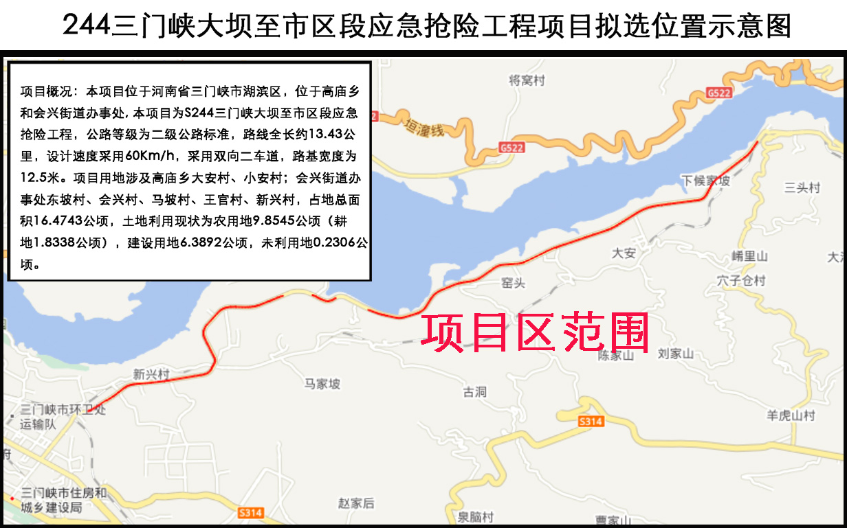 (详见附图:S244三门峡大坝至市区段应急抢险工程项目拟选位置示意图)