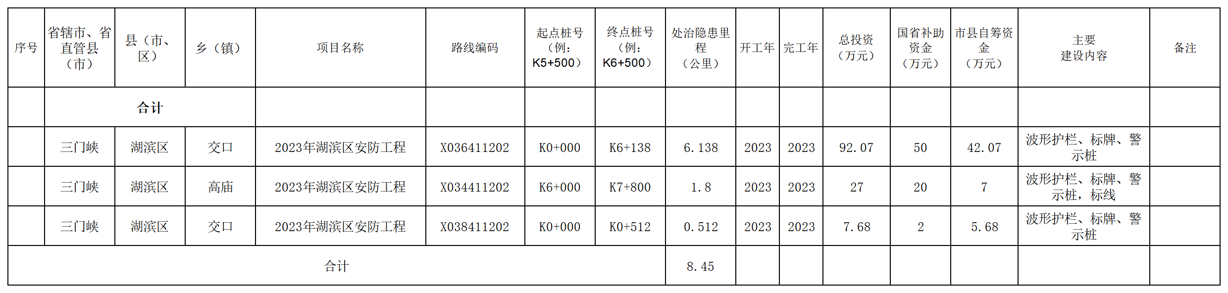 根据豫交文【2023】20号《河南省交通运输厅关于下达河南省2023年第二批农村公路建设补助资金投资计划的通知》精神,现下达我区2023年第二批农村公路生命安全防护工程项目3条路8.45公里,现予以公示。