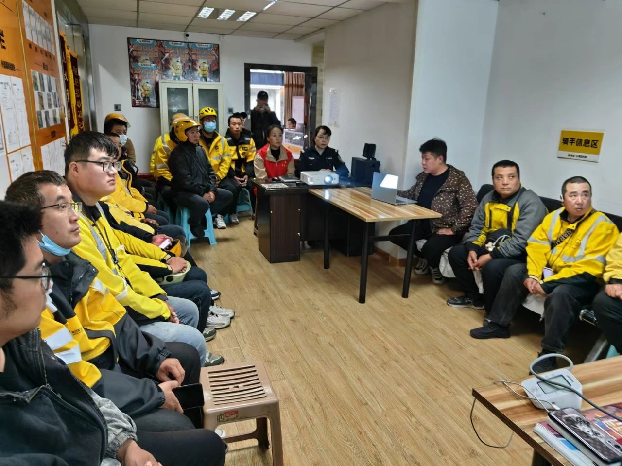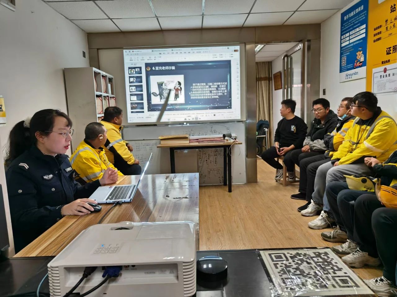 活动中,民警与美团外卖骑手齐聚一堂。首先赵庆为骑手们进行了专业的反诈知识培训,详细讲解了当前常见的诈骗手段,如电话诈骗、短信诈骗等,并传授了识别诈骗的方法和应对策略。骑手们认真倾听,积极提问,现场气氛热烈。