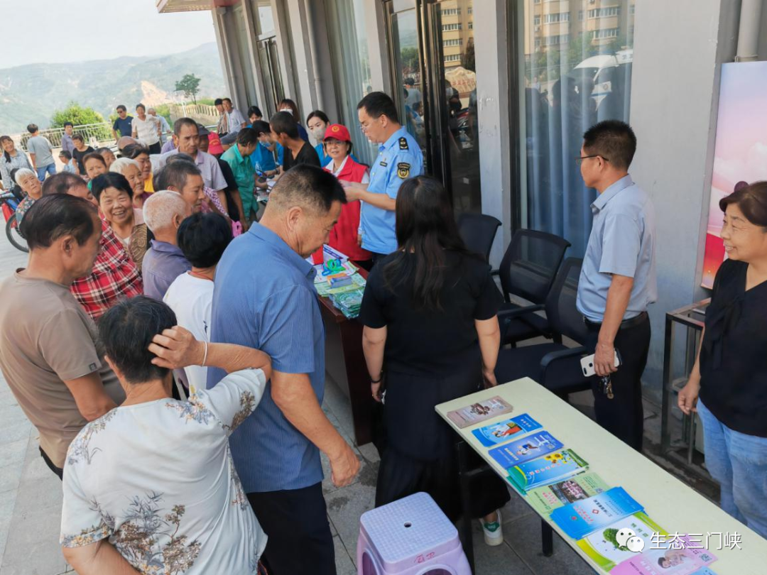 7月19日上午,在高庙乡大安村砥柱广场, 三门峡市生态环境局第一分局组织开展 志愿服务乡村行活动,宣讲新时代生态文明思想,科普环保知识,倡导绿色生活方式,发挥新时代文明实践新风尚,弘扬新风正气,服务基层群众。