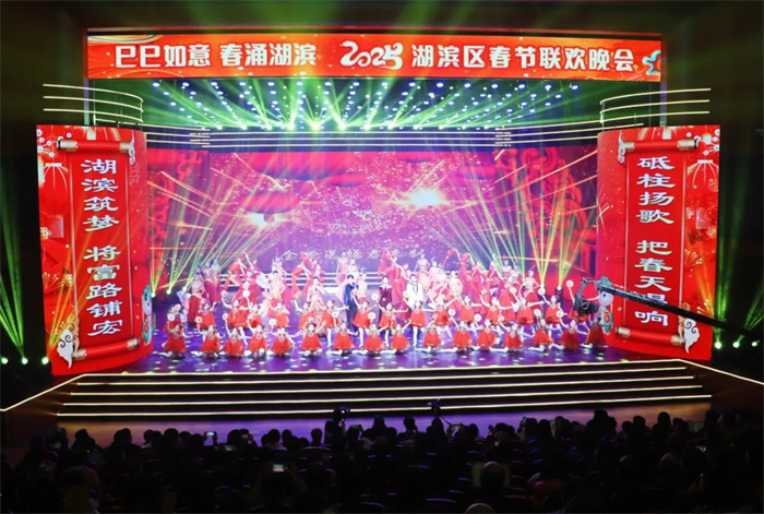 音乐传递着新年的喜悦,舞蹈表达着共同的祝愿,整场晚会融合多种表演形式,内容昂扬向上,以文艺方式呈现出全区在过去一年里取得的丰硕成果,也充分展现出全区丰厚的文化积淀和全区人民不惧挑战、朝气蓬勃、积极向上的精神风貌,唱响了新时代新征程的迎春曲。新的一年,湖滨区将因势而动、顺势而为、乘势而上,全力推动经济高质量发展,全力推动产业加速转型,全力推动城市更新改造,全力推动乡村全面振兴,全力保障和改善民生,全力防范化解重大风险,奋力谱写湖滨区高质量发展新篇章。