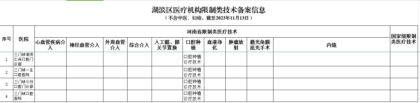 湖滨区医疗机构限制类技术备案信息